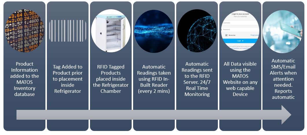 The MATOS® PLUS RFID Refrigerators utilise the MATOS® Monitoring Cloud Platform providing real time inventory conditions, allowing clients to see at all times the products inside each Refrigerator, what stock is getting low and/or due to expire – making all the manual stocktakes redundant saving you time and money!